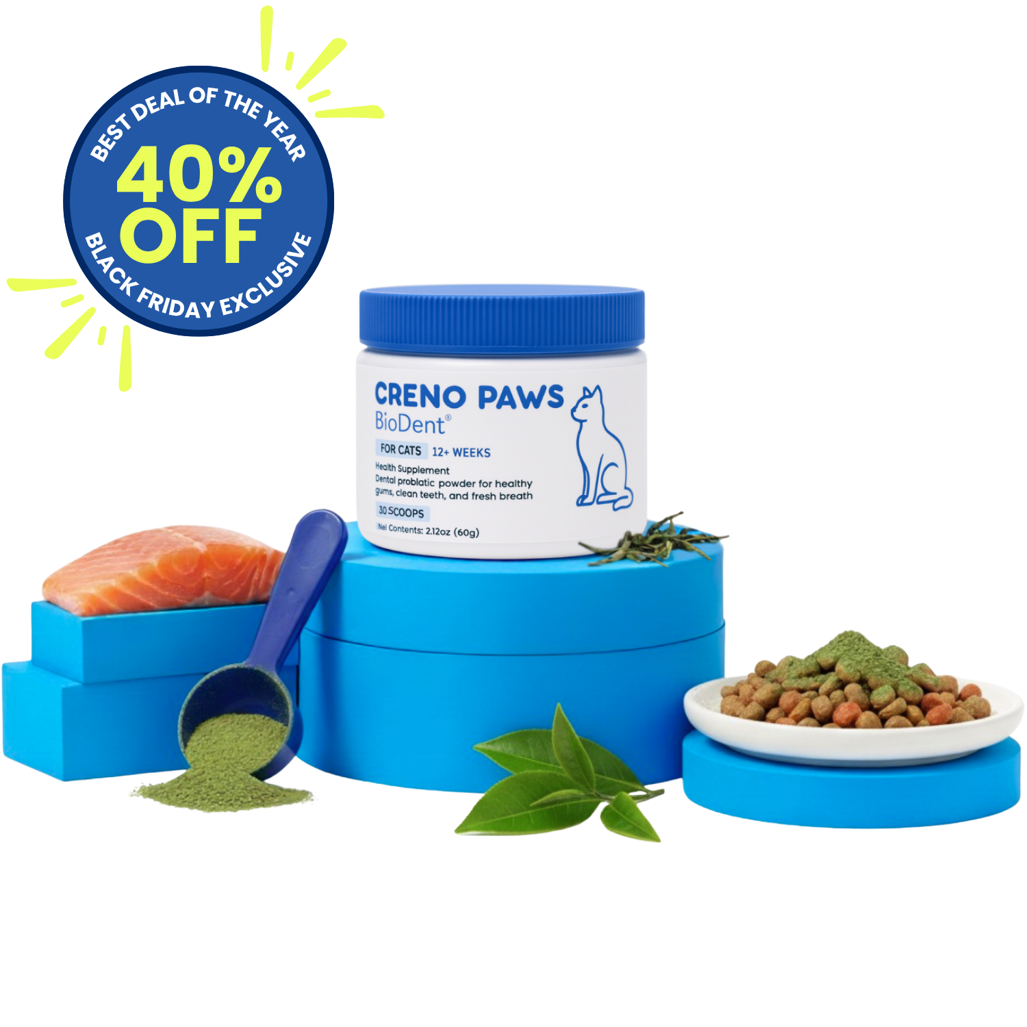 Most cats face dental disease by age 3. Left alone, it means pain, infections, even life-threatening illness. Creno Paws is the simple daily sprinkle that stops plaque early — giving you peace of mind and your cat a safer, longer life.